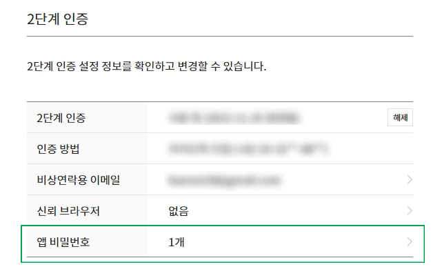 확인해보니, 이런 앱을 위해 비밀번호를 생성하는 기능이 있었다.